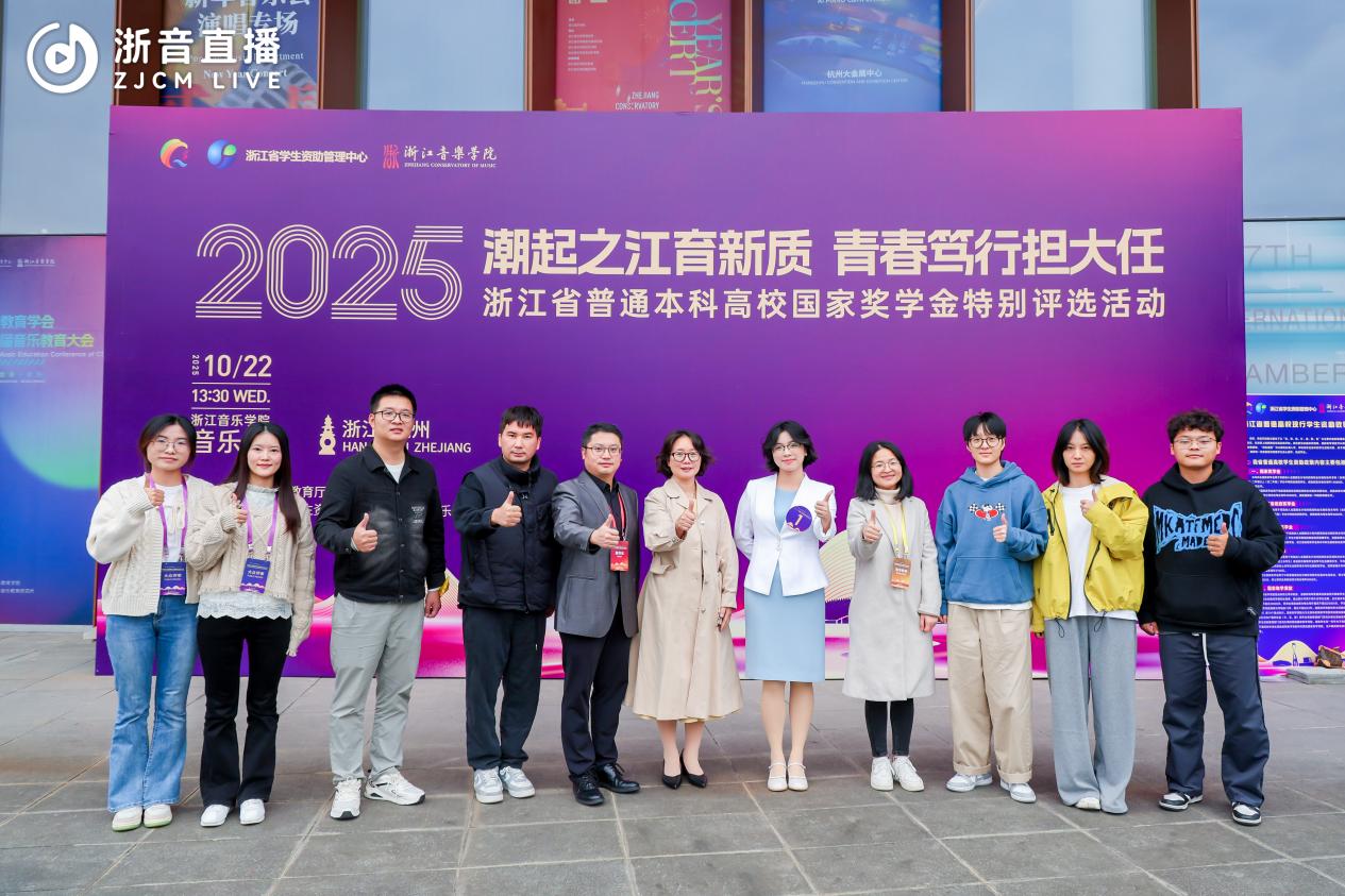 10月22日下午,“2025浙江省普通本科高校国家奖学金特别评选活动” 在浙江音乐学院圆满落幕。我院22艺术经纪班蔡晨含作为学校代表参与本次评选,校党委学生工作部副部长何露霞、院党委副书记叶城均等师生代表到场观摩。