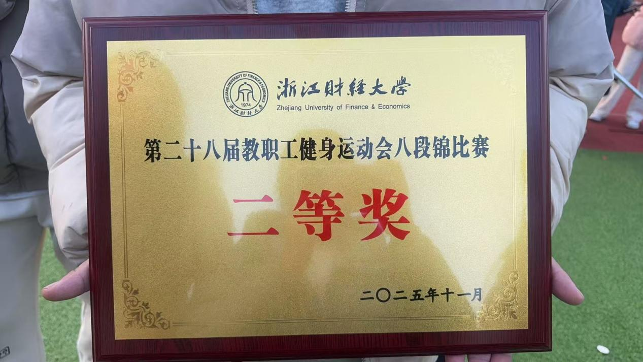 我院教职工通过工作之余的认真学习和排练,在本次运动会八段锦比赛中凭借着精湛的技艺和饱满的精神风貌,荣获二等奖的好成绩。充分展现了传统八段锦功法与艺术美学创新融合的崭新画卷。参赛选手们也在本次比赛中既感受到了八段锦的养身功效,更是“以体促艺、以艺润心”的深刻实践。